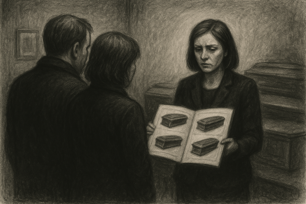 Cuando vimos el catálogo de ataúdes, todos nos parecieron horribles, no eran madera, ni color, ni forma, eran injusticia, silencio y muerte. Qué despiadado es este mundo, en el que lo más íntimo y doloroso de la vida se convierte en un negocio tan lucrativo, ¿cómo alguien puede enriquecerse mientras tu corazón se rompe? Qué crueldad que el último acto de amor se venda como si fuera una mercancía.